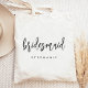 Ce sac fourre-tout simple et élégant comprend le mot "bridesmaid" en écriture manuscrite gris charbon. Personnalisez-le avec son nom dans la police sans serif. Fait un cadeau parfait de femme de ménage!