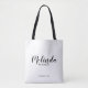 Script moderne Sac fourre-tout de demoiselles d'honneur personnalisées avec le nom de la demoiselle d'honneur personnalisée en noir style de police script moderne avec titre et date mariage dans le style de police sans serif moderne sur arrière - plan blanc. Aussi parfait pour Maid of Honor, Flower Girl, Mother of the Bride et plus.