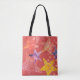 Sea Stars, Star Fish and Dots - Sac fourre-tout de bord de mer - Un design estival magnifique avec étoiles et points de mer. L'apparence artisanale des empreintes donne à ce lieu une véritable ambiance cool. Couleurs orange, jaune, rouge et violet. L'arrière du fourre-tout peut être customisé avec votre nom ou n'importe quel texte que vous préférez.