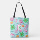 Personnalisez ce sac de scène de plage préppy avec une initiale et offrez-les en cadeau. Cette scène de plage avec des sacs de plage, des bikinis, des palmiers, des lunettes de soleil, des sacs de plage et des chapeaux de plage peut être trouvée sur d'autres produits dans ma boutique, PageCreativeDesigns.