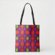 Totally thrilled with this bag. The material is thick and durable (this is my third purchase of this tote bag). The printing turned out amazing. The bright red was just as bright as it is on the computer. So impressed with this bag.