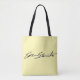 Crème Couleur Fourre-tout Imaginez vous promener dans votre ville préférée avec cette belle couleur jaune crème clair et couleur signature noire exquise fourre-tout glissé sur votre épaule, complétant sans effort votre tenue. Chaque détail délicat, de l'extérieur robuste en polyester brossé aux poignées 100% coton, parle d'un artisanat exceptionnel et d'une attention minutieuse aux détails. La doublure intérieure est laminée en noir pour un support supplémentaire, assurant ainsi que vos éléments essentiels sont sûrs et sécurisés. Ce fourre-tout n’est pas seulement un sac, c’est un énoncé de style et d’individualité. La signature d'Edna Stewart est bien visible, ce qui en fait une véritable signature unique.