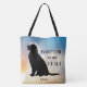 Rappelez-vous cet ami spécial qui est maintenant au pont en arc-en-ciel avec ce sac fourre-tout unique. Imprimez partout les caractéristiques de conception une silhouette noire d'un chien de golden retriever sur un fond de ciel bleu et de nuages. Le texte lit, "pour toujours à mon coeur." Personnalisez avec un nom ou des noms faits sur commande.
