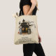 Ce sac amusant ou friandise a une photo d'Halloween de style vintage et poème dessus. Il y a une vieille maison branlante, une pierre tombale, un arbre effrayant et un truc ou un traiteur avec un costume squelette sur qui porte un seau citrouille. Les chauves-souris volent autour de la maison. Cela fera un tour si mignon ou un sac à gâter et peut être utilisé année après année. Il peut aussi servir de sac fourre-tout saisonnier pour la ville !