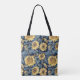 Faites votre shopping dans le style de cette fourre-tout inspirée du mouvement Art Nouveau avec des tournesols stylisés sur un arrière - plan bleu marine.