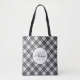 Tote Bag Tartan motif Noël noir blanc Monogramme