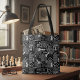 C'est ton mouvement ! Ce design de sac fourre-tout original en l'honneur du jeu classique d'échecs comprend la terminologie du jeu ainsi que des graphismes accrocheurs de pièces d'échecs pour compléter le motif. Les couleurs traditionnelles noir et blanc donnent une ambiance plus moderne et contemporaine avec l'ajout de tons gris et argent. Un subtil arrière - plan vérifié imite un échiquier sans être trop en face. Recherchez ID784 pour voir la gamme complète de couleurs et de produits supplémentaires avec cette conception.