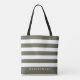 Motif à rayures vertes et blanches, sac fourre-tout tendance terrarium moss. Personnalisez avec le nom et le titre de la fête nuptiale.