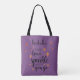 Toujours Laisser Un Peu Éclairer Où Que Vous alliez Typographie Fourre-tout sur fourre-tout violet. Vous pouvez changer la couleur de l'arrière - plan et vous pouvez personnaliser avec votre propre nom ou supprimer pour laisser juste le devis. Parfait pour célébrer un anniversaire ou un cadeau de remise de diplômes.