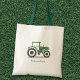 Un sac fourre-tout avec l'illustration d'un tracteur agricole vert et gris dans le style dessin animé et le texte personnalisable ci-dessous! Une bonne idée pour un cadeau à un fermier ou à une femme de la campagne !