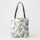 La conception du produit est composée d'un motif de fleurs de tulipe colorées en violet, rouge, rose, bleu et jaune. Cette illustration botanique fait un sac fourre-tout élégant, moderne et unique - Une idée cadeau pour l’anniversaire, Pâques, Fête des Mères, mariage et plus encore!