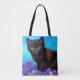 Sac fourre-tout avec un chat et des fleurs dans le style Van Gogh! Un chat noir pose avec des fleurs violettes. Un cadeau à la purr pour les amoureux de les chats et collectionneurs d'art hollandais !