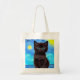 Sac fourre-tout avec un chat noir dans la peinture de Van Gogh Starry Night! Ce chaton aux yeux bleus regarde agréablement d'un arrière - plan de tourbillons bleus et d'une lune jaune vif. Un cadeau fantastique pour les amoureux de les chats et les collectionneurs d'art hollandais !
