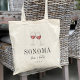 Bienvenue invités à votre mariage de destination de pays viticole avec ces sacs fourre-tout personnalisés chic et modernes. Design présente une illustration de deux verres clinquants de vin rouge avec votre destination mariage sous (illustrée avec Sonoma) en lettres serif classiques. Ajoutez vos noms sous le script cursif manuscrit, ainsi que l'année. Les couleurs peuvent être modifiées pour correspondre à vos couleurs mariages à l'aide de l'outil de design de Zazzle.