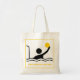 Sac fourre-tout personnalisé de silhouette noire du joueur de water-polo qui affiche une icône de pictogramme minimaliste d'une silhouette noire d'un joueur de water-ball tenant sa balle devant le but et votre texte sur arrière - plan blanc avec bordure jaune. Ce design cool et moderne est un modèle et entièrement personnalisable. Découvrez de nombreux modèles dans notre magasin de cadeaux sportifs.