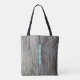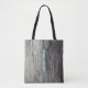 The wood piling in the original photograph by MaeFlowers on this Tote Bag sits along the dock of a canal leading to the Gulf of Mexico The photo is a closeup showing the weathered wood with all its grain pattern, cracks and other details of life along the waterfront. The colors are muted bluish grays and greenish browns. There is a line of text in light aqua blue which can be personalized, or deleted if you prefer.