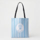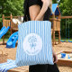 Tote Bag Whimsical Blue White Stripe Preppy Monogram