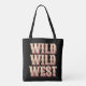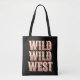 Style rétro grunge "Wild Wild West" design texte avec des lettres rayées dans les couleurs jaune, rouge et beige