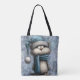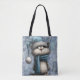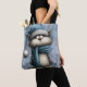 Tote Bag Winter Blue Christmas Cat With Hat And Scarf