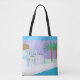 This tote bag is designed with a depiction of a small Caribbean Village next to a turquoise bay, and it's ready to hold your valuables at the beach, pool, or wherever you travel.