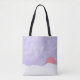 This tote bag is designed with my depiction of an orange sunset over snowy mountains under a lavender sky.