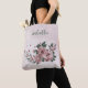 Unique beautiful tote bag featuring romantic pink flowers and green leaves.