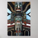 Wooden totem pole, monumental sculpture carved from large tree, painting effect
