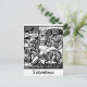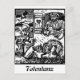 Totentanz Death Waits postcard: This vintage art is part of otto wirsching's dance of death/ Vom Totentanz Anno, circa 1915. This was the most significant of the many “death dances” produced during the First World War, He was greatly influenced by the Dance of death woodcuts of the old German masters of the Renaissance. His choice of images, however, is distinctly modern: in his the figure of Death, in the traditional form of a skeleton, confronts a variety of contemporary figures who will meet their doom as a result of the devastation of this new war. Overall Wirsching's, Vom Totentanz is a grim indictment of the evil of war and man’s innate inhumanity to man. By alluding so directly to the hallowed stylistic tradition of the German Totentanz, Wirsching’s philosophical message is all the more damning. this particular woodcut depicts Death sitting just around the corner from a man oblivious leans out of his window while eating breakfast. A starving dog waits just below the window with its hackles up as it backs away from death. A strange bat winged bell flies overhead and some mountains can be seen in the background.