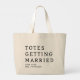 Totes Getting Married Bride Name Wedding Tote Bag features the text "Totes Getting Married" in modern script typography with your name below. Makes a fabulous gift for the bride-to-be. Created by Evco Studio www.zazzle.com/store/evcostudio