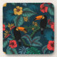 tropical seamless pattern with tropical leaves and flowers and 2 toucan birds.