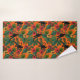 tropical seamless pattern with tropical leaves and flowers and 2 toucan birds.