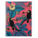 tropical seamless pattern with tropical leaves and flowers and 2 toucan birds.