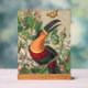 Ce joli collage est basé sur des éléments de la peinture d'oiseau toucan à la facture de la Manche.De l'édition 1842 du Jardin Des Plantes de Paul Gervais, des botaniques de livres anciens, et un arrière - plan de papier peint William Morris antique.