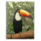 In a lush tropical rainforest, a vibrant toucan perches gracefully on a moss-covered tree branch, its striking, oversized beak contrasting brilliantly against the verdant foliage. The bird's iridescent plumage and intense gaze make for a captivating image, showcasing the beauty and exotic allure.