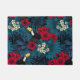 Hand-drawn tropical flora and fauna- hibiscus and plumeria flowers, various palm leaves and toucan bird