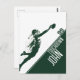 This highly customizable football-themed postcard provides an action scene where a football player flies to catch the ball over the touchdown line. This is a great design for pro or amateur American football players where you can customize the name, the jersey number, and the message.