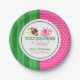 Throw a fun touchdowns or tutus themed gender reveal party using these paper plates. This design features a football and tutu illustration in pink and green. Sporty and cute!