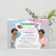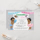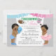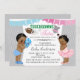 Touchdowns ou genre tutus dévoilent des invitations à la douche de bébé avec adorable bébé afro-américain garçon et fille sur un joli chevron gris arrière - plan avec des bannières roses et bleues. Cette invitation à toucher ou à baby shower de tutus est facilement customisée pour votre événement en ajoutant simplement vos détails.