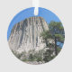 Situé dans les collines noires du nord-est du Wyoming, le Devils Tower National Monument, se dresse contre le ciel bleu. Cette photo couleur capture les ombres, formées par les colonnes verticales de roche ignée, mettant en évidence les rainures sur la face de la tour. Les roches perdues forment un tas près de la base de la tour. Des pins entourent la base en montant au-dessus du paysage environnant. Un pin de Ponderosa s'élève au premier plan, ajoutant un contraste vert à la tour et un ciel bleu.
