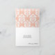 Cartes de remerciement TOWER EIFFEL sur le thème français avec un style parisien féminin et sophistiqué avec une bordure florale damassée noire et blanche antique vintage, un design à l'aspect ruban imprimé de couleur corail pêche et la Tour Eiffel dessus. Celles-ci sont parfaites pour un mariage ou une fête prénuptiale sur le thème français. Celles-ci font également de belles cartes de remerciement à tout moment. L'avant, l'intérieur et l'arrière de cette carte de remerciement peuvent être personnalisés et/ou monogrammés avec un nom, un message spécial et les initiales ou le monogramme d'une mariée et d'un marié ou la première et la dernière lettre ou d'une personne au dos de la carte. Conçu par Chrissy H. Studios, LLC. Tous droits réservés.