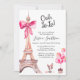 Couleur d'eau douce L'invitation à la fête d'anniversaire de Paris comprend une aquarelle Tour Eiffel, un mignon chien français, des macarons et un box avec ballons. Personnalisez avec vos informations d'anniversaire.