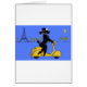 Ma peinture d'un mignon petit caniche noir chevauchant un scooter de vespa jaune vif et la tour Eiffel dans le arrière - plan.