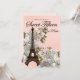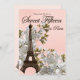 Ces somptueuses invitations dans des teintes douces rose et marron, avec la Tour Eiffel et le arrière - plan fleuri de cerisiers en fleurs, sont parfaites pour un printemps à la quincaine d'anniversaire parisienne à thème. Ces invitations peuvent être customisées avec votre propre libellé à l'avant et à l'arrière de cette carte. Si vous avez besoin d'aide pour customiser cette carte, envoyez-nous un courriel à chrissyh@chrissyhstudios.com. Illustration numérique © Chrissy H. Studios, LLC. Tous droits réservés.