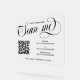 Signe acrylique translucide pour petite entreprise à usage promotionnel avec un look dépoli imprimé pour partager vos médias sociaux et l'adresse de site avec vos clients et clients à l'aide de votre code QR. Analysez-moi en haut dans un script tourbillonnant de calligraphie noire. Élégant panneau promotionnel acrylique pour votre petite entreprise personnalisée avec votre code QR et les poignées de médias sociaux et site Web avec des polices noires contre blanc translucide. Inscription promotionnelle pratique et élégante en acrylique pour votre petite entreprise.