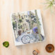 Beautiful, watercolor of a blue bicycle with a basket of purple flowers, parked on the cobblestone street, with village shops in background. Make this yours by customizing the spine title. Useful ideas for scrapbooking, photo album, your family travel planning, recipe book, wedding album, students or teachers.