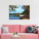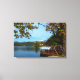 Canvas landscape print of traditional colourful tourist boats in Lake Bled under a chestnut tree in fall colours in an autumn landscape in Slovenia.