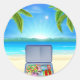 Tourist Suitcase on Tropical Beach Classic Round Sticker