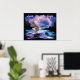 Éclairez votre maison avec cette affiche unique "One Of A Kind" d'aigle chauve. Il présente une peinture d'un aigle à tête blanche qui s'enfonce au-dessus d'une rivière Lune Bleue, Rose et Violet pendant une tempête de foudre et la citation...."Soar Like A Eagle" ! Peinture artistique originale de l'artiste Kerry Miller.