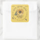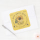 Étiquette jaune carré avec illustration vintage de tournesol et abeille réaliste. Le mot "miel" est écrit dans une police marron décorative. Ces étiquettes de 1,5 po x 1,5 po peuvent accueillir des ours en plastique de 8 et 12 oz.
