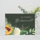 Le tournesol du pays | green bridesmaid carte de proposition est parfait pour votre simple classique boho jardin d'été mariage grange. Le design comprend un bouquet de vintage or jaune aquarelle et des tournesols oranges rustiques, une élégante végétation d'eucalyptus vert sauge moderne et une rose en ivoire blanc. Le design est idéal pour un décontracté mariage de feuillage d'automne minimaliste. N'hésitez pas à nous contacter pour toute question concernant le design du produit ; encouragez !
